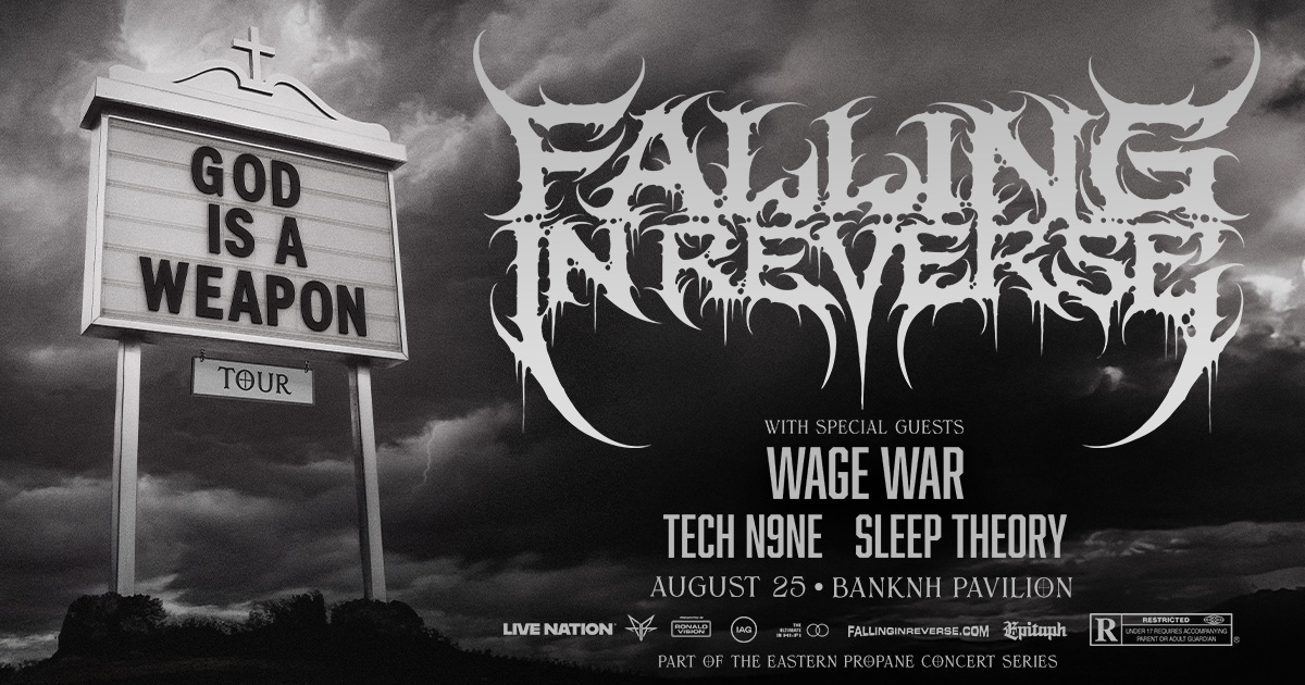 Falling In Reverse is bringing their explosive God Is A Weapon Tour to BankNH Pavilion on August 25th, with special guests Wage War, Tech N9ne, and Sleep Theory.